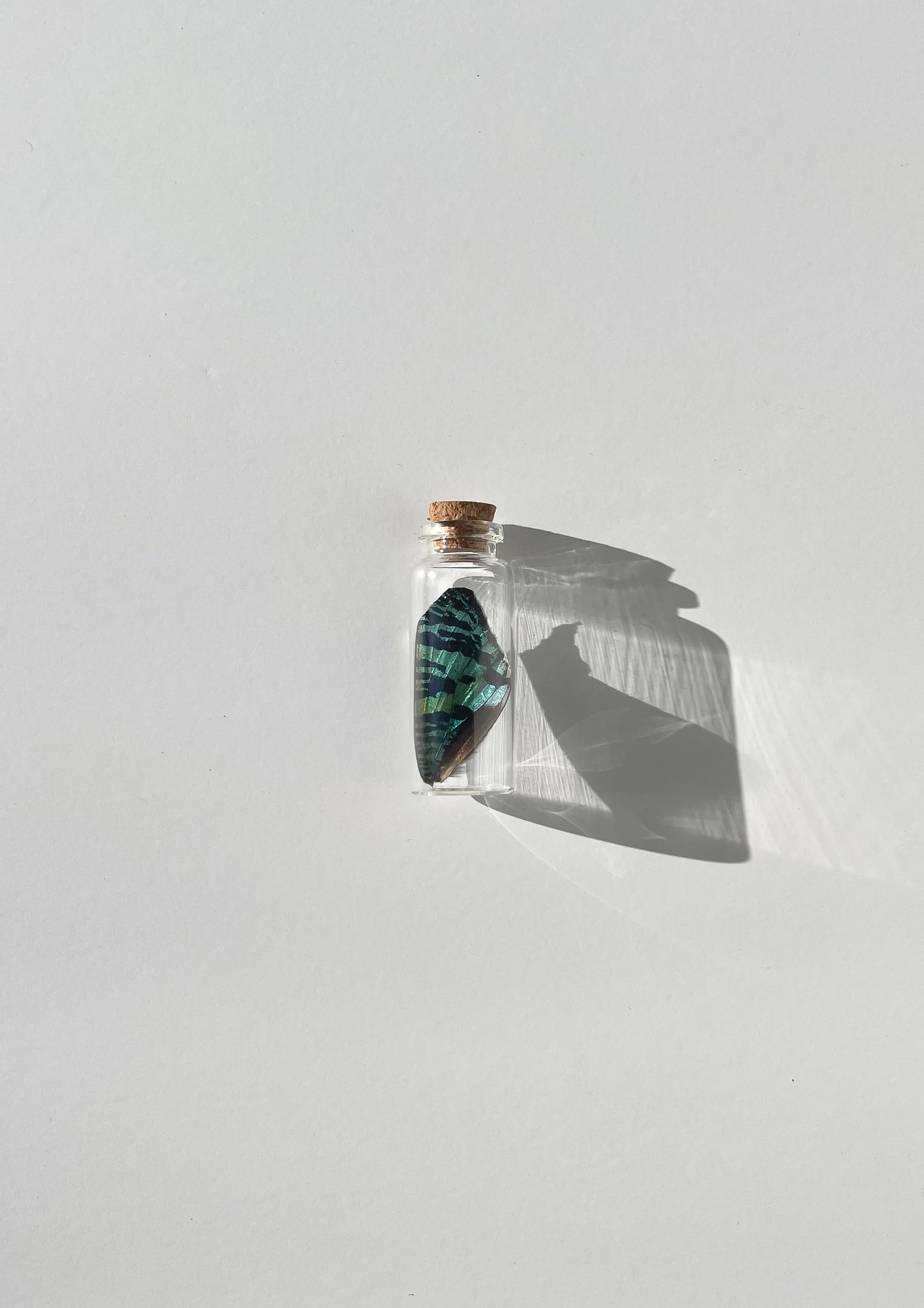 Real butterfly and moth wings, preserved in 10ml glass jars.